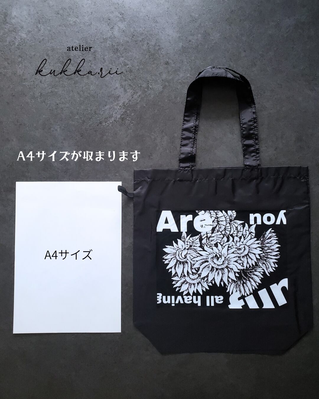 チョークアーティストrihoが描いた向日葵が華やかにデザインされたエコバッグです。