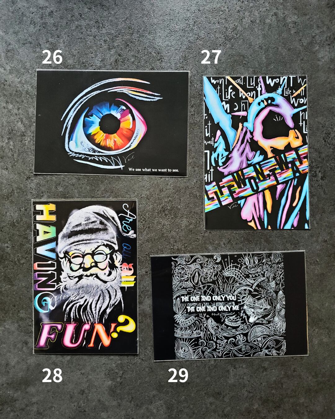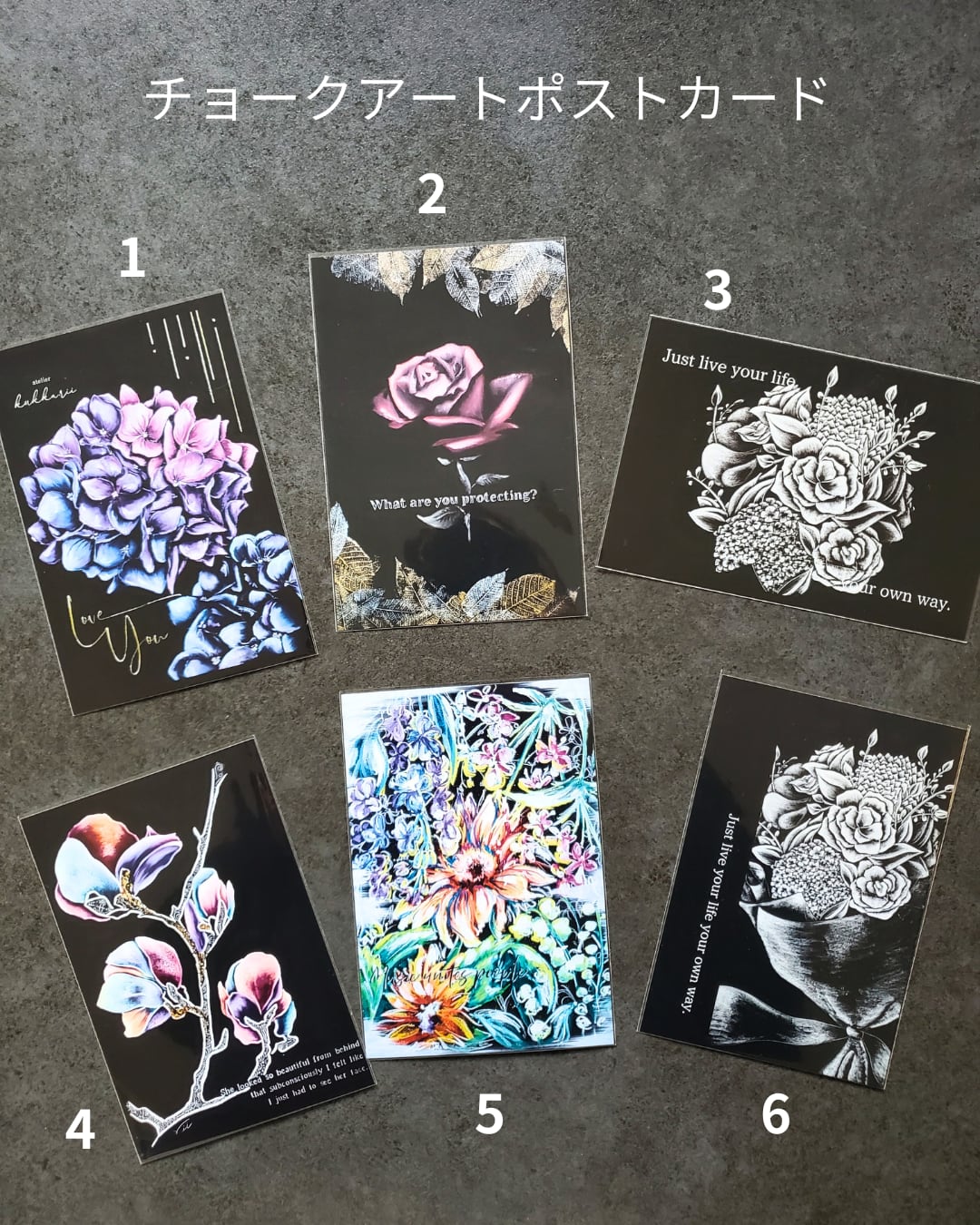 チョークアーティストrihoが描いたアートがプリントされたチョークアートポストカードです。